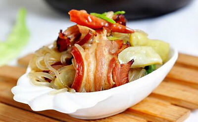材料:腊肉100克,红薯粉条100克,豆角适量,红尖椒4只,香菜适量,生抽一大勺,蒜6瓣。
