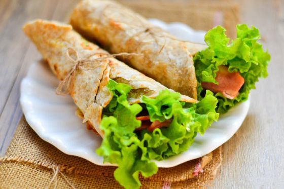 18、再放上一片生菜一同卷起即可食用,喜欢食辣还可以刷些辣椒酱,里面也可夹些火腿片等。