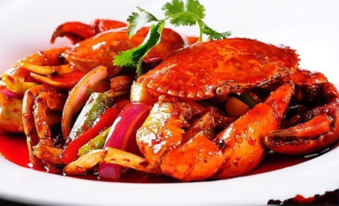 原料:螃蟹1800克、色拉油500克、生姜50克、大蒜50克、大葱50克、花椒15克、八角4个、桂皮10克、干尖椒25克、盐两小匙、鸡精一小匙、料酒80克、海鲜酱一大勺、麻辣酱一大勺、红辣椒粉一大勺
