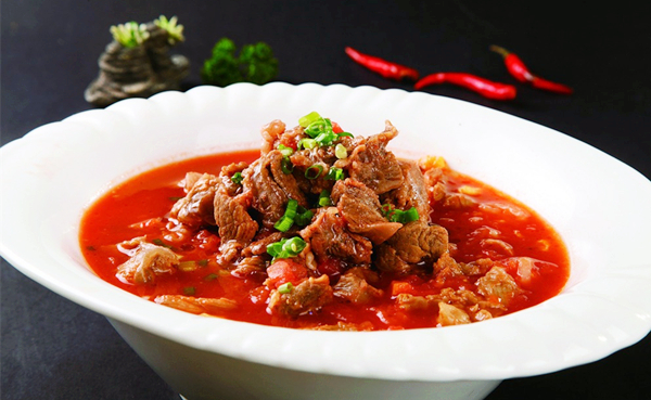 原料:牛腩500克、西红柿三个、葱一根、冰糖适量、桂皮一片、干辣椒三四个、生抽一汤匙、黑胡椒适量、花椒一小撮、料酒一汤匙、八角一个、蒜三瓣、老抽一茶匙、盐适量、生姜三片、油适量、水适量