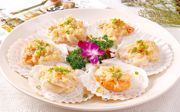 9、开盖取出上桌,一道鲜美可口,营养丰富的蒜蓉扇贝就摆上餐桌。