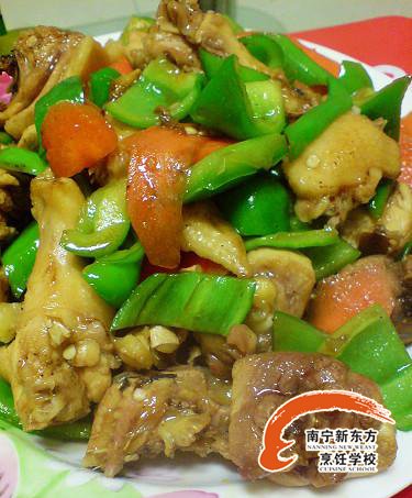 做法:光鸡洗净斩件,以盐、生抽、花生油拌匀备用;胡萝卜去皮洗净,切粒后飞水备用;海带洗净切片备用;开锅下油,爆香拍蒜、姜片和指天椒,下鸡件大火爆炒,溅少许米酒,加入胡萝卜和海带继续翻炒,以盐、糖调味,炒匀即成。南宁新东方烹饪:www.gxxdfpr.com