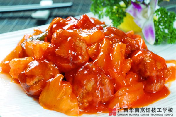 6、锅里倒入酱汁,大火煮到变稠,再加入炸好的肉丁,翻炒均匀裹上酱汁即可。