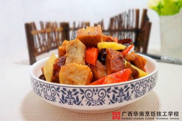 原料:香芋400克、红萝卜100克、莴笋100克、木耳30克