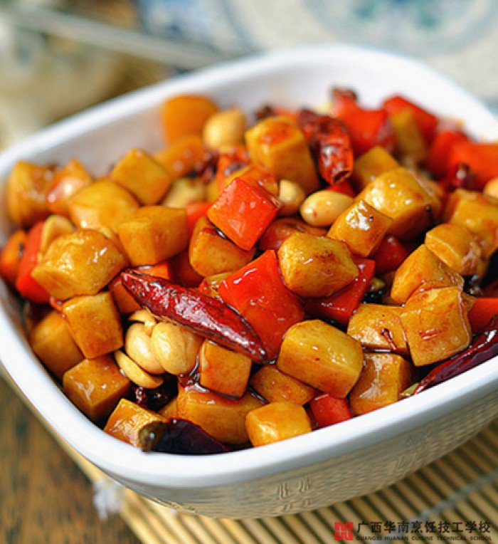做法:1、年糕、胡萝卜切丁,花生米炸一次;