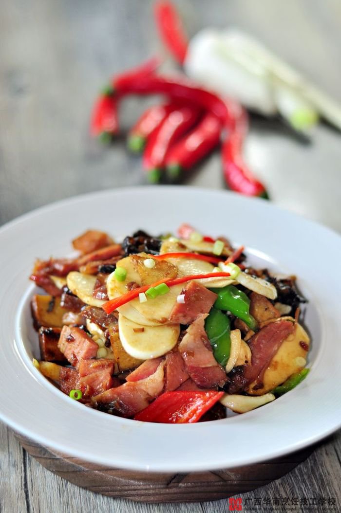 做法:1、茭白切斜片,豆干切小片,腊肉切片,青红椒切菱形块;