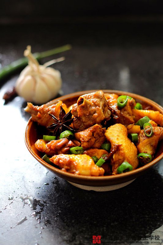 材料:鸡肉500g、绿尖椒3根、生姜3片、大蒜3粒、小葱3段、八角1粒、食盐1小匙、料酒1汤匙、生抽1汤匙、白糖1汤匙、蚝油1汤匙、老抽0.5汤匙、食用油1勺