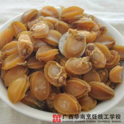 1、鲍鱼切去边缘,用刀尖等距离剖刀,下锅加 清汤、精盐、味精微火垠10分钟,起锅沥干水份。