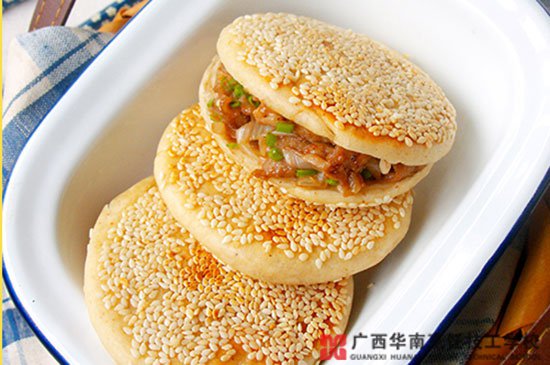 8.将牛肉炒熟,少量盐酱油调味,在烧饼上横切一刀将烧饼切开,但不要切断,将烤肉填入烧饼里夹着吃。