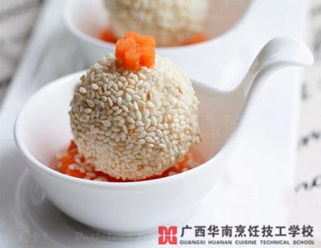 原料:山药适量、红薯适量、熟糯米粉适量、糖桂花适量、炼乳适量、淡奶油适量、糖粉适量、熟白芝麻适量