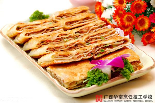 千层肉饼是一道传统面食小吃,对于它的由来还有一个真实的故事。相传唐朝年间,百姓为感激玄奘从西域取经归来, 分别带着寓意千卷佛经的各种食品来古城长安祭奠玄奘,其中就有这千层肉饼,后来被一位御厨发现此饼味美,并将此食品带到宫廷,经过精心改良后成为了非常独特的一种御用点心。时过境迁,这种独特的宫廷御膳又流传到民间,被称为千层肉饼,并历经千年、流传至今。