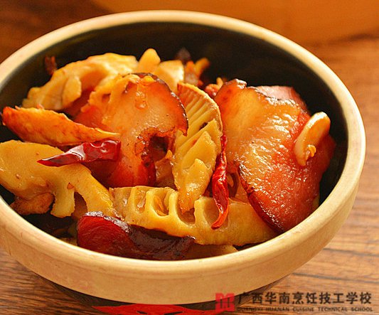 5、锅里放入少量油,煸香笋片,加入少量食盐,大概5分钟后出锅。
