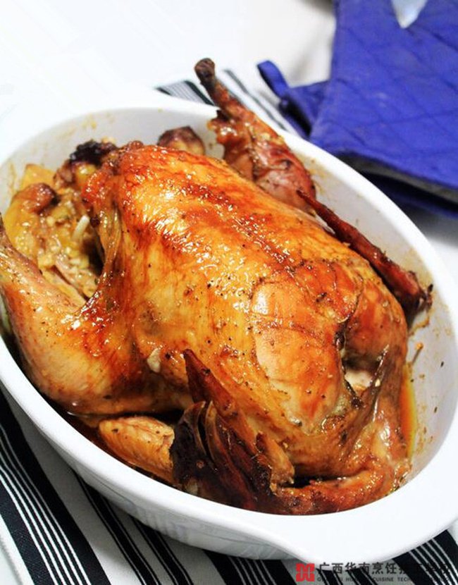 5、腌制24小时,中间注意多反面,腌好的鸡放入烤箱,210度烤40分钟;