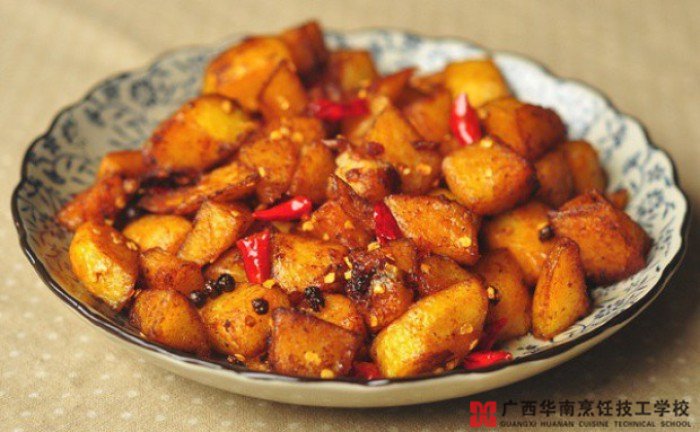 食材:土豆、冰糖、藤椒、干辣椒、蒜、生抽、盐
