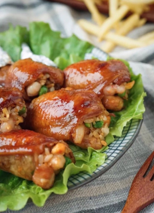 7、摆盘,香喷喷的鸡翅包饭就做成功啦!根据自己口味可以撒点芝麻。