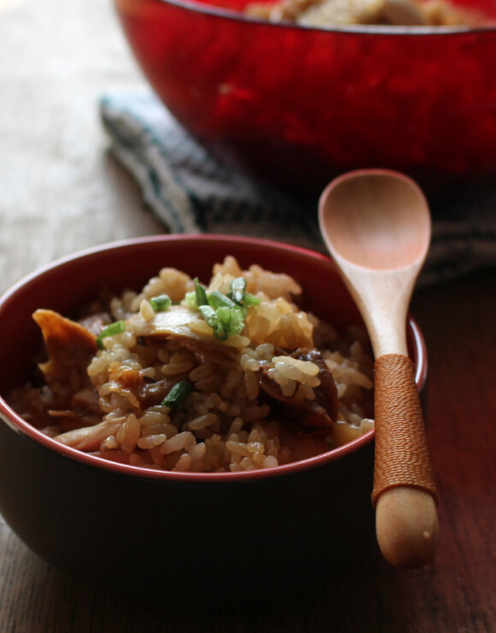 5、将米饭、鸡腿肉和炒好的酱汁混合就可以吃了。