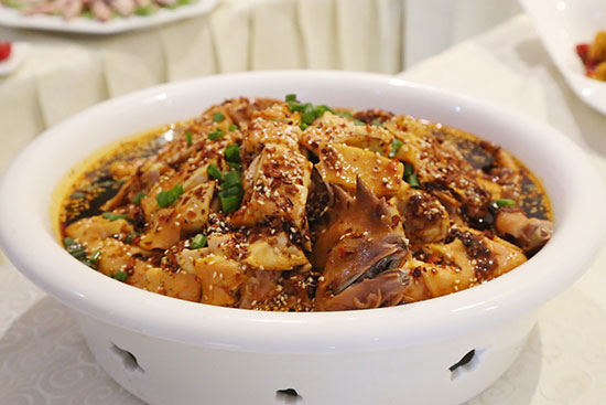 仔公鸡半只500克 细大葱2根 香芹2根 生姜1块 大蒜5粒 干辣椒1把 干花椒1汤匙 酱油2汤匙 白糖1茶匙 盐适量 菜籽油8汤匙 香油1汤匙 凉开水3000ml 冰块1碗。