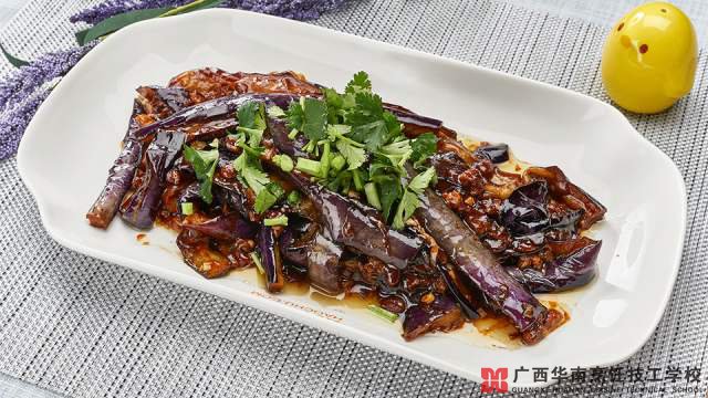 今天,广西华南烹饪技工学校老师为大家带来一道秘汁茄子的做法,快去学起来吧!