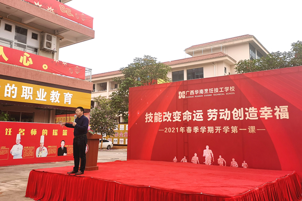 2021年已经来到3月,广西华南烹饪技工学校的学子们陆续回校,新学期新希望,迎接同学们的第一道动力曙光,是校长翟维铁给大家的新学期寄语。3月5日,学校开学典礼暨“开学第一课”上,翟校长以“技能改变命运,劳动创造幸福”为主题,为东盟校区全体师生上了一堂发人深省的“开学第一课”。