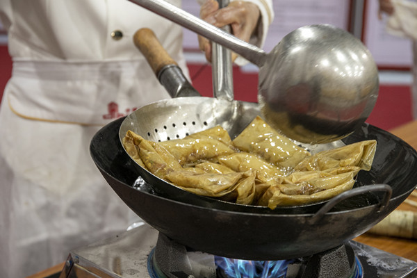 大师们一边细心地做着菜,一边详细的讲解了每道菜的注意事项与制作技巧,从菜品所需的材料,到食材的处理,刀工的考究、火候的掌握......赢得了同学们热烈的掌声!
