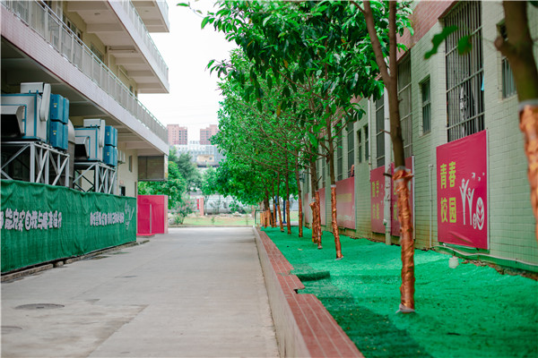 教学楼前,朝气蓬勃的绿树宣告着夏的来临。