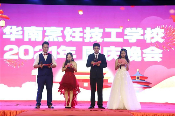 动感音乐随之响起,开场舞《无价之姐串烧》的表演,拉开了本次国庆晚会的序幕,校长翟维铁先生发表了热情洋溢的致辞,翟校长首先向工作在各个岗位上的华南教师及在此求学的学子们送上了真诚的问候和祝福。致辞中,翟校长表示学校取得的成绩离不开老师们的辛勤付出,华南烹饪美好的蓝图还需要大家去描绘,相信只要有老师和学生们的共同努力,广西华南烹饪技工学校一定能够再接再厉,乘风破浪,揭开新的发展篇章,与时俱进,再创辉煌!