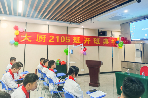 青春梦想在这里迎风起航,近日,广西华南烹饪三年粤菜大厨2105班举行开班典礼,班级主任、教务处老师和全体学子代表出席本次典礼。