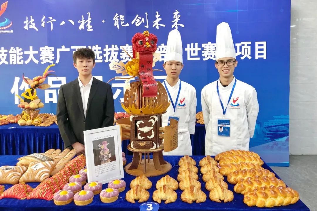 当然,我校作为广西目前大规模、强专业的烹饪类院校,集烹饪、西点、西餐、酒店管理等热门专业为一体,汇聚天下名师,组建专业教师团队,打造了专业化的中烹、西点烘焙、西餐、酒店管理等实训教室,建校27年来培育了无数技能人才,在本次第二届全国技能大赛中,我校以实力说话,参赛师生们先后共斩获7个奖项:烹饪(西餐)项目第一名和第二名、烘焙(国赛精选)项目第一名和第二名、糖艺/西点制作项目第一名和第三名以及本次骆良辉学子获得的烘焙(世赛)项目第一名。