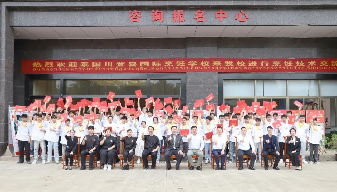 随后,广西院校校长闫冠英先生与泰国川登喜国际烹饪学校总经理塔南帕先生为中泰美食学习班的同学们颁发结业证书。