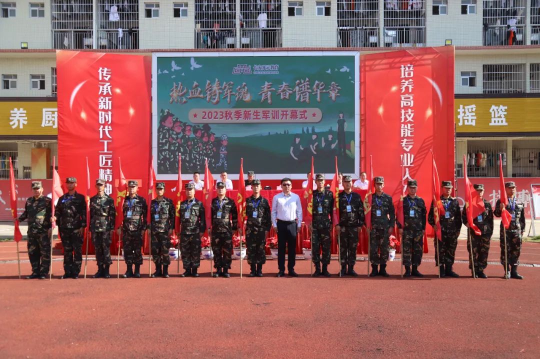 强体魄铸军魂,锻造无悔青春。为深入贯彻党的二十大精神,铸牢中华民族共同体意识,增强学生国防意识,强化爱国主义、集体主义和革命英雄主义观念,让同学们更好地学习军人的光荣传统和优良作风,培养学生吃苦耐劳、艰苦朴素精神,同时促进学生综合素质全面提升,2023年10月16日,广西华南烹饪技工学校2023秋季新生军训开幕式于东盟校区田径场隆重举办。