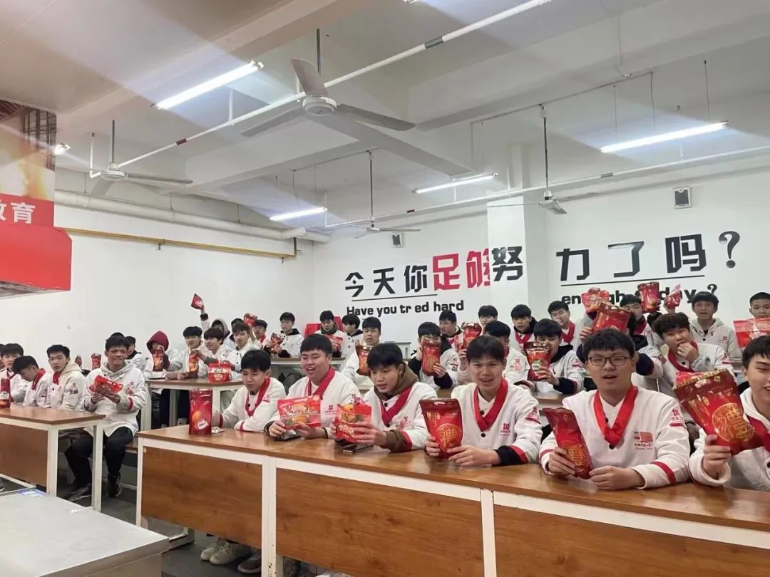 当一份份充满爱意的“加油包”送到同学们面前,学校老师也向同学们转达学校的问候和关心,他们详细了解同学们的生活需求,并叮嘱同学们要合理安排作息时间,日常注意防寒保暖,确保身体健康,同时鼓励同学们好好学习,为梦想而奋斗。