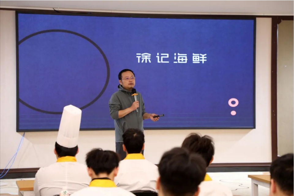 在企业宣讲环节,湖南徐记酒店管理有限公司的人力资源总监杨坤进行发言,他的声音充满热情与诚意。详细介绍了企业的基本情况以及未来规划。他指出:“我们公司一直致力于为员工提供良好的职业发展平台,重视人才的培养与成长。为学校学子提供实广阔空间的就业空间,共同培养餐饮行业的优秀人才。”他的宣讲激发了在场学生们的极大兴趣,现场气氛活跃,同学们对未来充满希望。