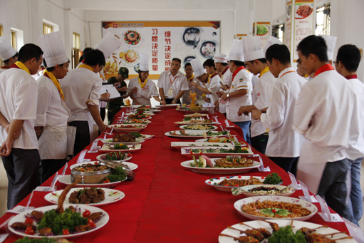 为了考验学生的“厨艺”,广西华南烹饪学校今日隆重举行了创新菜比赛,学生踊跃报名,到底有没有学有所成呢?看到学生色香味具全的作品,不用说,在学校,他们基础都打的很牢,都能很轻松的做一道“拿手菜”!