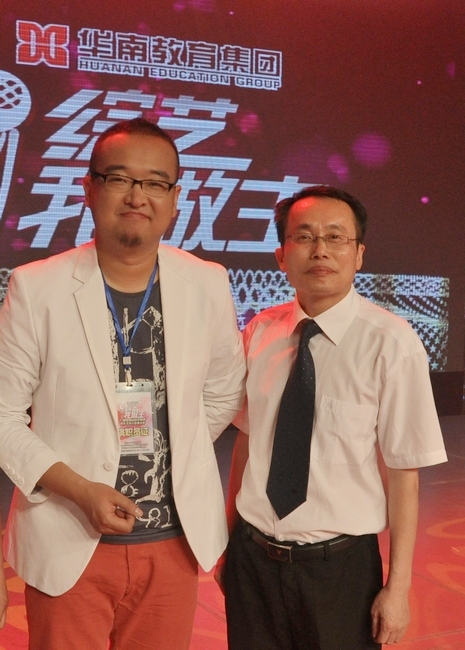 “华南很给力,华南教育集团是一个非常有文化底蕴的集团”!作为本次大赛半决赛和决赛的主评委,中央电视台著名主持人朱轶(中央电视台《快乐主妇》节目主持人;专业相声演员;专业厨师)真切感受到了华南教育集团的企业精神和文化,大赛结束后,他对我校支持公益事业的善举表示赞扬并与我校宋凡校长合影。