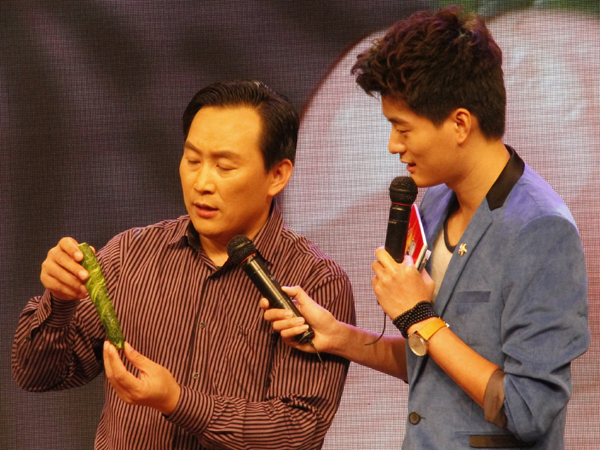 广西小品喜剧演员杨建伟上台学习切蓑衣黄瓜