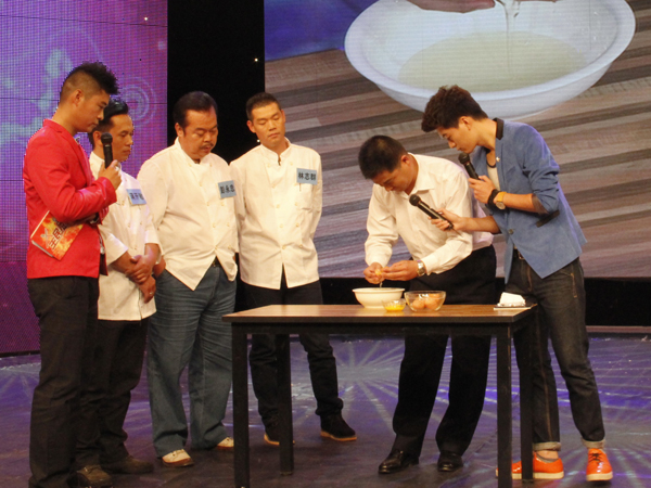 朱伟老师先给选手们做:蛋泡糊的示范表演