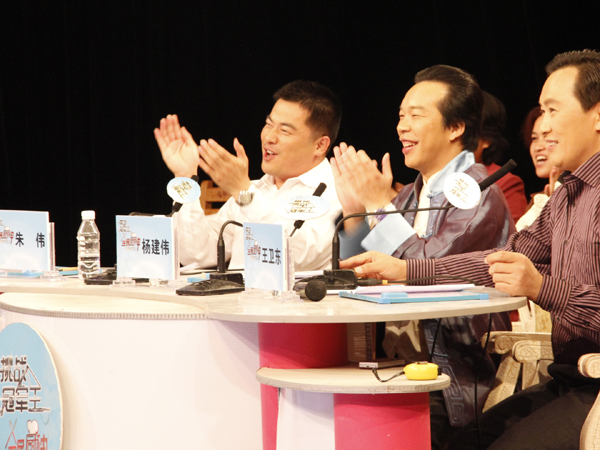 经过20多轮角逐最后胜出的三名选手:美食灰太狼蒋开敏、老友行者彭永忠、北海鱼霸王林志群进入总决赛,三名选手登台亮相