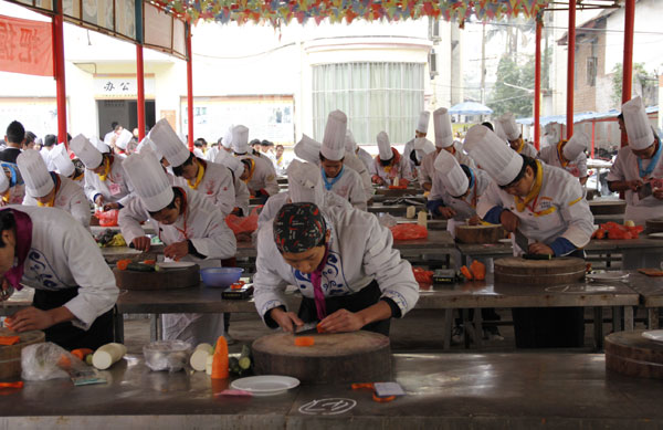1月10日,春风和煦,阳光明媚,广西华南烹饪学校明秀校区彩旗高挂,一派生机勃勃、欢快祥和的节日景象。第19届厨艺新星大赛在学校领导及社会各界的支持下,隆重举行。本次大赛从实施组织、规格档次上可谓盛况空前,群英荟萃。来自华南两个校区300多名烹饪精英代表汇聚一堂比拼厨艺,堪称烹饪界的“华山论剑”。