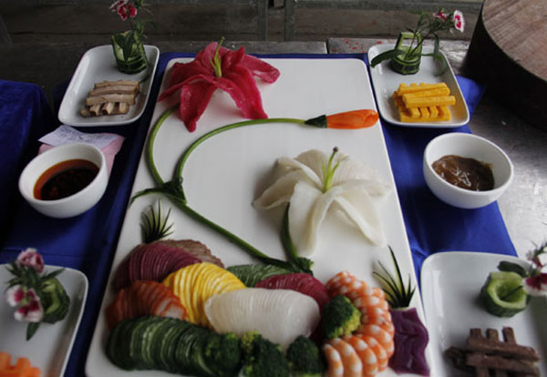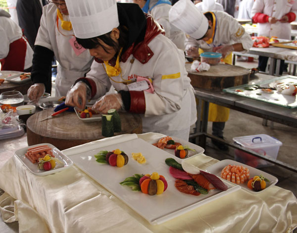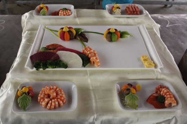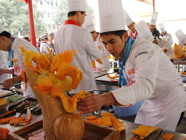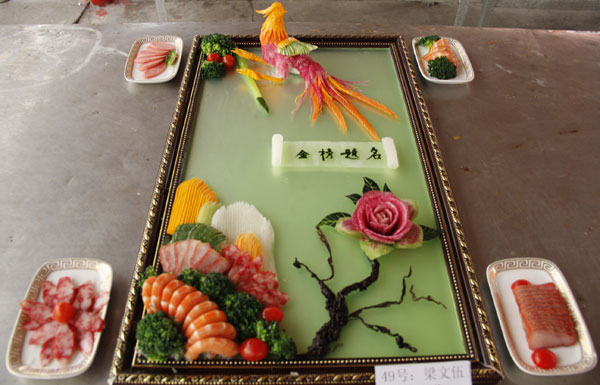 本次大赛历时一天,参赛作品达200多道菜、80多种地方小吃以及100多个雕刻作品。餐饮原料中的鲍参翅肚、生猛海鲜、家禽陆畜等上等原料的花色菜、创意菜让人垂涎欲滴,花色冷拼、雕龙刻凤、琼脂、面塑等作品更是让人感觉如走进艺术殿堂,顿生“此物只应天上有,人间哪得几回闻”的感觉。