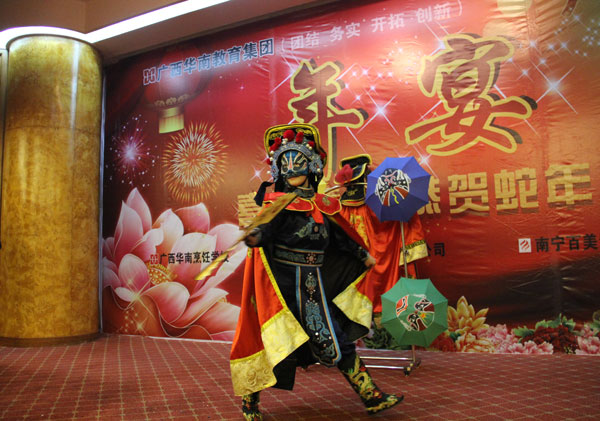 飞龙远行辞旧岁,金蛇贺春送福来,2012年即将离我们远去,2013正向我们走来,在这个喜庆的时刻,华南教育集团广西院校的全体员工欢聚一堂,共同庆祝昨天的辉煌业绩,展望华南的美好未来。