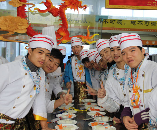在参观他们热菜的操作间的时候,他们娴熟的做菜的技巧让我相信我也能在这所厨师学校里学到这样的本事,在这一个春天和你的下午,我决定了我未来要走的路,在广西华南烹饪学校里我看到了一个个腾飞的梦想。