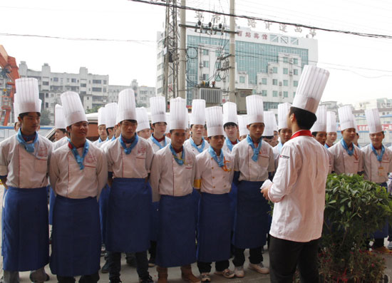 晨操结束后,两年制金牌大厨专业、两年制大厨精英专业、两年制金牌西点专业、一年制烹饪精英专业等每个班级的同学还分别喊出他们自己的班号。金牌大厨专业3班同学说:“我们班的口号是,没有完美的个人,只有完美的团队。”瞧,如此激情的口号,即喊出了同学们的勇气,又喊出了他们的士气,充满了活力的一天开始啦。