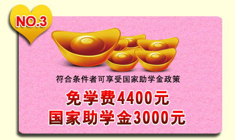 3、报读一年制西点精英专业、一年制大厨精英专业---缴清费用享受学校爱心助学金1000元,同时减免300元住宿费。