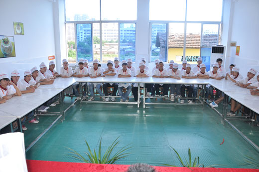 学区负责人朱伟主任给同学们介绍了学校管理制度、学习及生活中的注意事项,具体的教学安排、教学计划、教学流程等,希望同学们能够尽快适应华南烹饪学校的校园环境。
