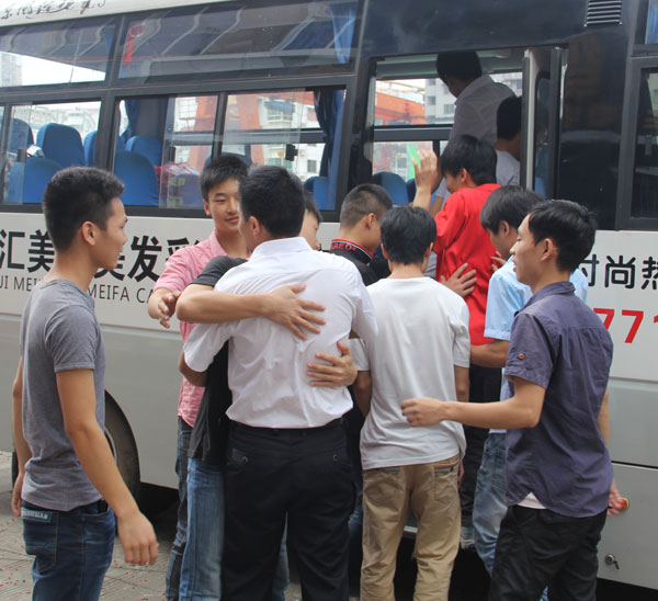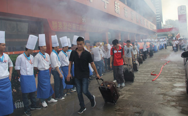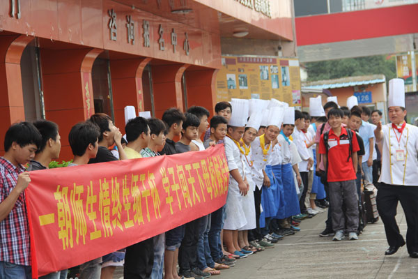 2013年6月17日,广西华南烹饪学校学生李荣国等10名毕业生学生赴沃顿国际大酒店就业,学校为其举办了隆重的欢送仪式,各专业的学生均齐聚校门广场为毕业生送行。或许这天对广西华南烹饪学校大厨113班的同学来说永生难忘,当鞭炮声想起的那刻,离别的步伐在他们的行列中漫行,舍不得的离愁别绪,忘不掉的师生情谊,却终将无法阻挡因梦想起航的激动心情。