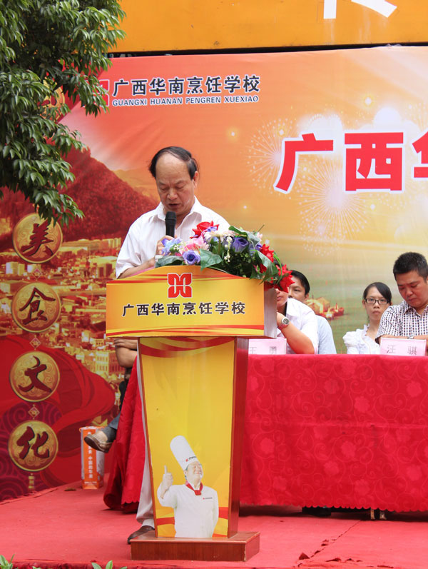 中国烹饪协会理事、广西烹协常务理事、全国餐饮业国家一级评委、广西区烹饪协会常务副会长何逸奎在开幕式上作重要讲话。何会长首先对大会的成功召开表示热烈祝贺。他表示职业教育大大地缓解了社会就业压力,为社会培养了实用型经济建设人才。对广西华南烹饪学校在弘扬美食文化、推动美食发展和为社会进步以及地方经济建设等方面作出的巨大贡献给予了高度赞扬。同时。何会长希望学校乘势而上,与时俱进,开启烹饪教育的新篇章,希望同学们在双选会上,发挥自己的特长应聘成功。