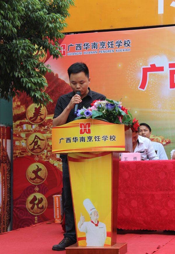 开幕式上,广西华南烹饪学校校长为大会致开幕词。校长首先代表学校对莅临本届开幕式的所有领导嘉宾表示热烈的欢迎与衷心的感谢。校长表示,多年来,学校始终本着“对社会负责,对学生负责,对家长负责”的精神,积极探索,努力创新,不断深化职业教育理念,学校始终坚持“职业教育就是就业教育”的办学理念,注重毕业学生能否好就业,更重视毕业学生如何就好业。学校长期拓宽就业渠道,建立健全就业网络,已与数千家单位建立了稳定的合作关系,多年来,广西华南的学子用自己的知识、才干和智慧开创了美好的明天,也为母校赢得了荣誉。