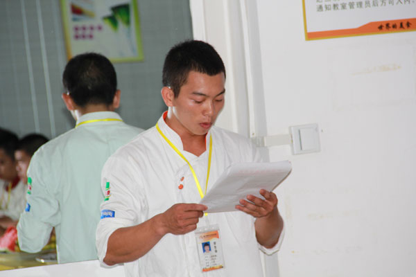 另外,大厨114班班长也进行了发言:一年的时光,弹指一挥间,很多记忆将成为我们生命中最为珍贵的收藏:刀工房里、实操厅里、理论教室里、军训、百家宴。。。都有我们珍贵的记忆。感谢母校,为我们提供了学习求知的环境,为我们成长成才构筑了坚实的平台,感谢学校两年来对我们的教诲和栽培。我们会永远感激学校,感恩老师。