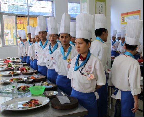 广西烹饪协会副会长何逸奎在参加广西华南烹饪学校考试时表示他很欣慰有这么多年轻人从事餐饮行业,他希望传统技艺能够在他们手中延续。朱主任对餐饮人才的培训非常重视,对广西华南烹饪学校的教育理念也十分认可,他说:“选择了厨师,就是选择了一份幸福的职业。”“厨德、厨艺、厨政”三元一体的教学保证学生们在餐饮行业的绝对竞争优势。