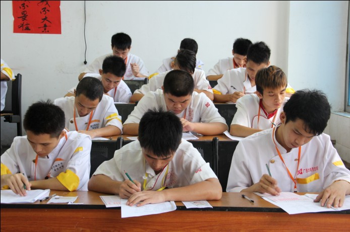 下午3:00分广西华南烹饪学校2013年两年制大厨精英班114班毕业考试理论考试正式开始。